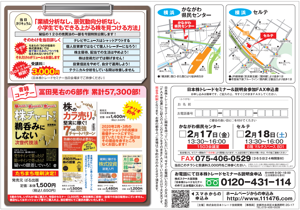 | オンライン日本株セミナー(体験セミナー)受講料 | 3000円 |